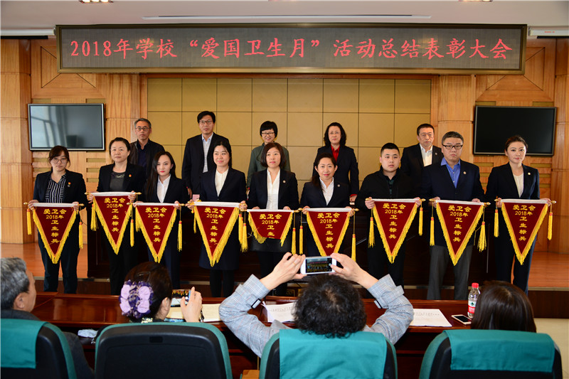 会议首先由爱卫会副主任、学工部部长石明杰宣读《关于表彰在“爱国卫生月”活动中荣获卫生标兵、卫生优秀办公室、教室、实训室、学生寝室的通知》;其次由学校领导向荣获“卫生标兵”的部门颁发锦旗;最后吴艳秋对本次“爱国卫生月”活动作总结讲话。