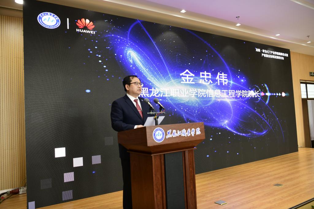 2021年4月23日,由BB贝博艾弗森官方网站和华为技术有限公司联合主办的“龙职·华为ICT产业学院揭牌仪式暨产教融合协同发展研讨会”在BB贝博艾弗森官方网站隆重举行,BB贝博艾弗森官方网站校领导、华为中国政企教育行业副总经理张晓鹏、黑龙江省工业和信息化厅副厅长梁祥利、黑龙江省教育厅二级巡视员丁哲学以及二十多所职业院校的相关领导、十多家相关企业的代表参加了会议,研讨会由BB贝博艾弗森官方网站副校长王明海主持。