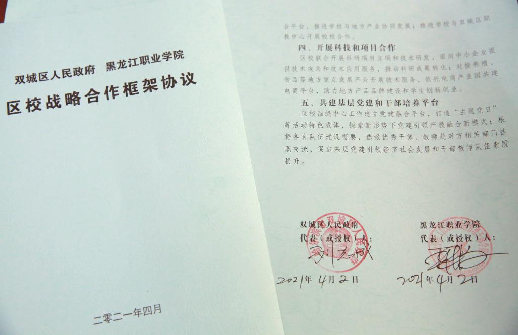 4月26日,随着哈尔滨市双城区人民政府区长刘志成和BB贝博艾弗森官方网站校长王利文,分别在《区校战备合作框架协议》上落笔签字,标志着学校与属地政府全方位、多层次、宽领域战略合作的大幕已正式拉开。