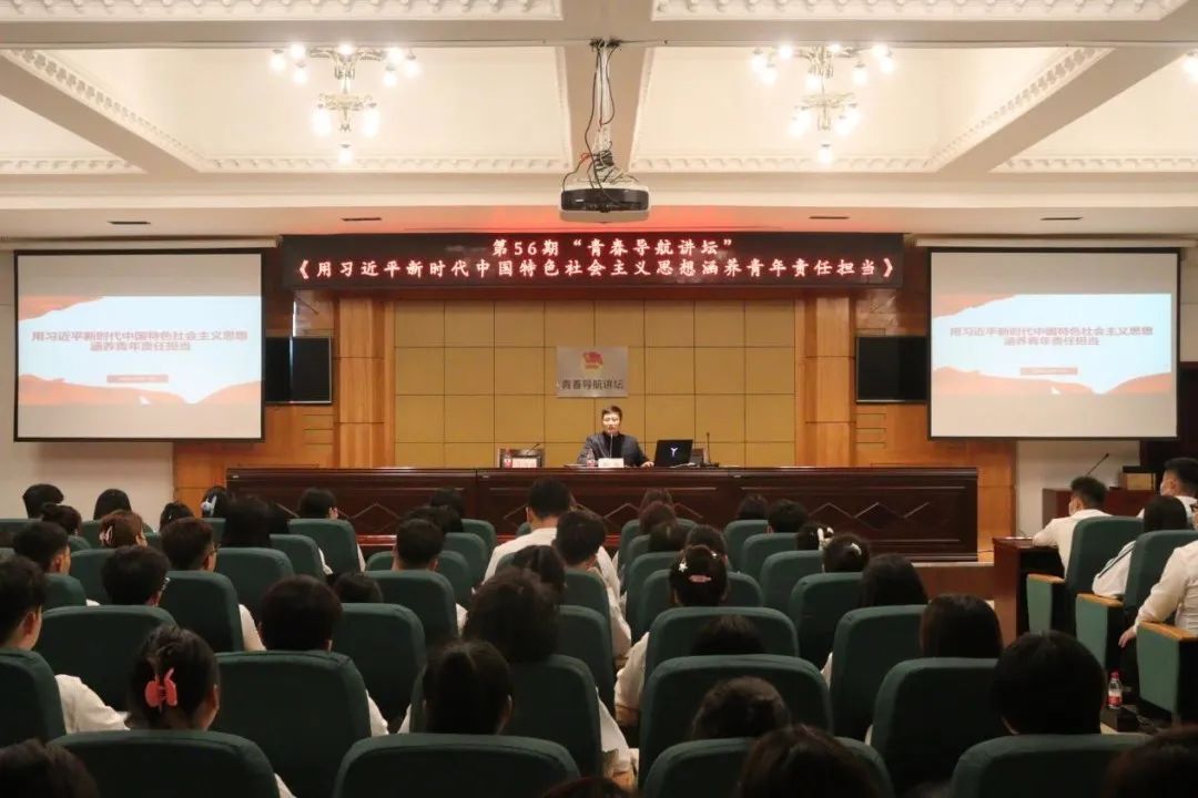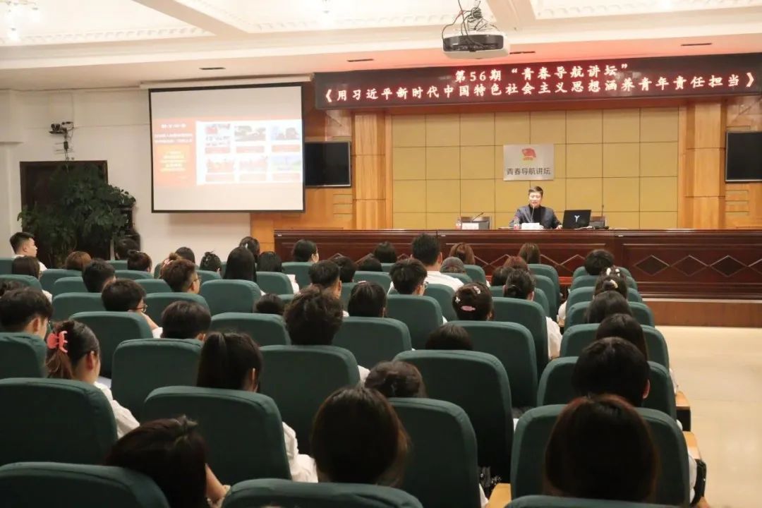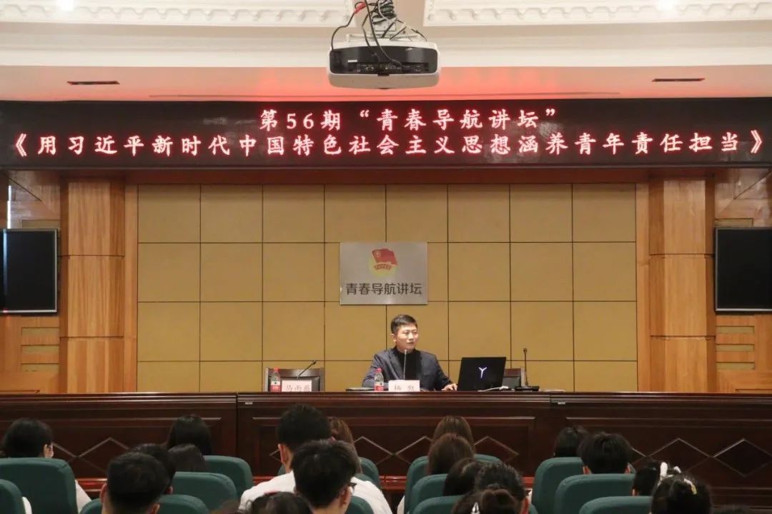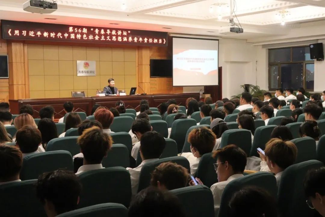党的二十大报告指出:“全党要把青年工作作为战略性工作来抓,用党的科学理论武装青年,用党的初心使命感召青年,做青年朋友的知心人、青年工作的热心人、青年群众的引路人。”2023年11月2日晚18:00,贝博官网在清华楼九楼报告厅召开“第56期青春导航讲坛”贝博官网马克思主义学院杨凯老师为同学们做题为《用习近平新时代中国特色社会主义思想涵养青年责任担当》的专题讲座,讲座由校团委干事马雨薇老师主持。本期讲座采取线上线下相结合的方式,线下2022级、2023级学生代表共计240余人参加会议,线上观看人数7400余人,实现贝博官网大一、大二在校学生全覆盖学习。