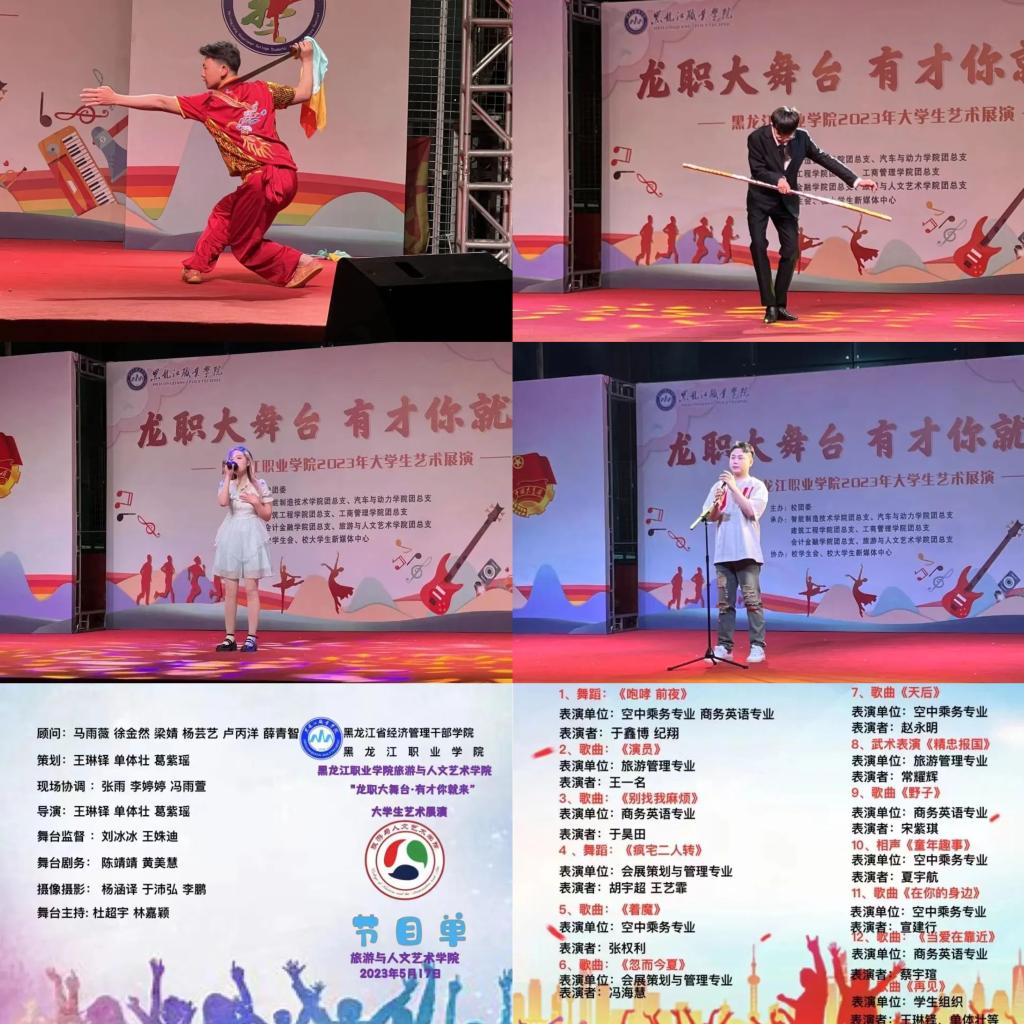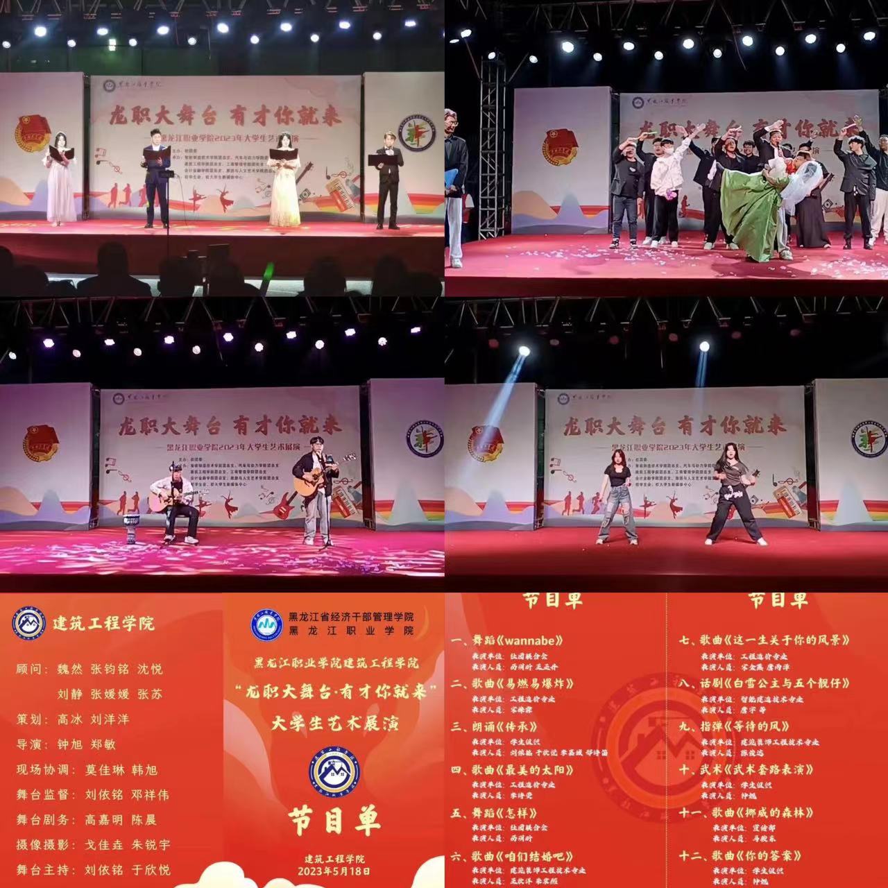 为深入开展学习贯彻习近平新时代中国特色社会主义思想主题教育,落实立德树人根本任务,实现文化铸校战略,扎实推进“铺路石”文化建设,弘扬“龙职”精神,打造“龙职”品牌,在学校第八届“铺路石”文化节期间,在5月14日-5月19日为期一周时间里,由校团委主办、一校区各分院团总支承办的“龙职大舞台·有才你就来”2023年大学生艺术展演在校园篮球场的露天舞台隆重举办。