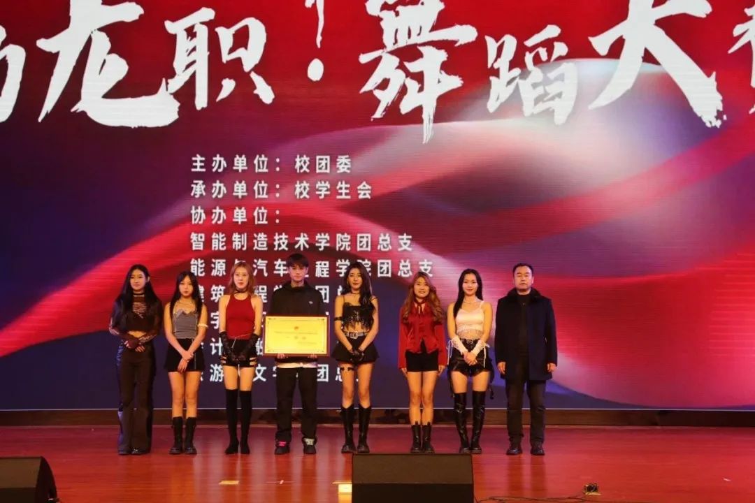 舞者们怀揣着激情与梦想,用他们动感的舞姿感染着现场的每一位观众。节目包含现代舞、民族舞、街舞等多种形式,舞者们用生动形象的肢体语言,高难度的技巧动作,诠释出最富活力的青春姿态。台下同学们热情高涨,为每一位舞者加油呐喊。绚丽的舞蹈,璀璨的灯光,每一组的表演都活力四射,整场活动精彩纷呈,为全体观众呈现一场精彩绝伦的视觉盛宴。经过激烈的角逐,最终数字商贸学院舞蹈《SEVEN》获得一等奖;旅游人文学院舞蹈《锁》、能源与汽车工程学院舞蹈《青苹果乐园》获得二等奖;智能制造技术学院舞蹈《文艺复兴+舞蹈串烧》、会计金融学院舞蹈《As if it's your last》、旅游人文学院舞蹈《pink mamba》获得三等奖;会计金融学院舞蹈《恰恰》、数字商贸学院舞蹈《万物生》、建筑工程学院舞蹈《大鱼》、能源与汽车工程学院舞蹈《pull up》、智能制造技术学院舞蹈《yes or yes+rolling》、建筑工程学院舞蹈《舞蹈串烧》获得优秀奖,与会评委老师上台为获奖选手颁发荣誉奖状。
