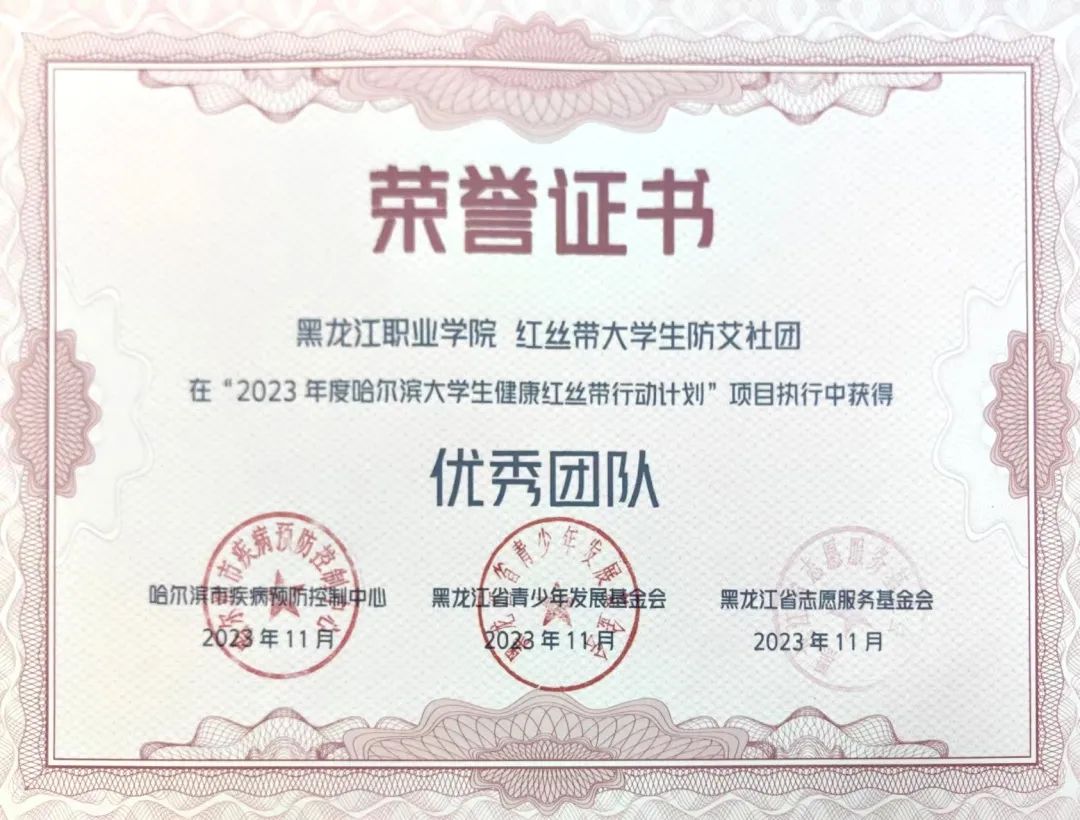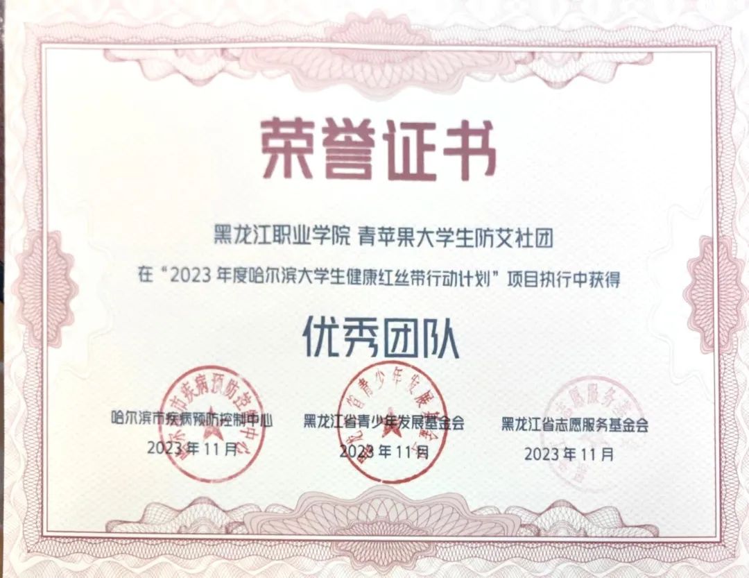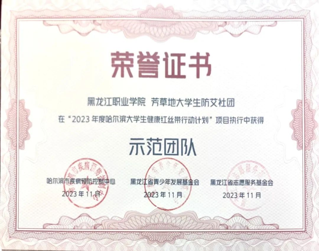2023年第二届“哈尔滨大学生健康红丝带行动计划”共评选出的3支最佳示范团队、3位最佳示范指导教师、6位最佳宣讲员、5位最佳短视频创作者、12支示范团队、12位示范指导教师。贝博官网芳草地大学生防艾社团获得示范团队奖,是哈市高职院校唯一获奖院校。