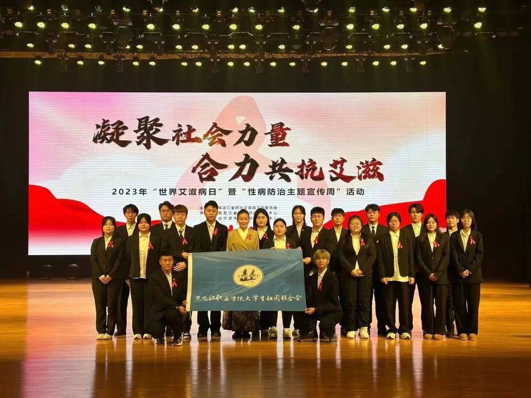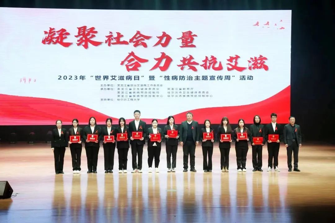 为提高广大群众预防艾滋病的安全意识,大力倡导文明健康的生活方式,由省防治艾滋病工作委员会主办,省卫健委、省教育厅等部门承办的2023年“世界艾滋病日”暨“性病防治主题宣传周活动”在哈尔滨工程大学启航剧场隆重举行。在哈49所高校学生代表和社团代表共同出席、参与了活动。贝博官网社团指导教师、校团委组宣办主任唐晓恬代表贝博官网学生社团参加活动。