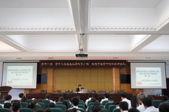 开班式过后,马克思主义学院老师黄志勇为培训班学员作了题为《让有信仰的人讲信仰》的第一讲。