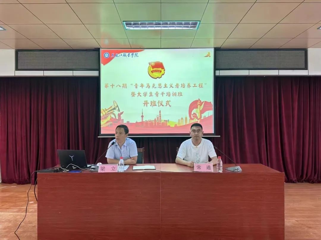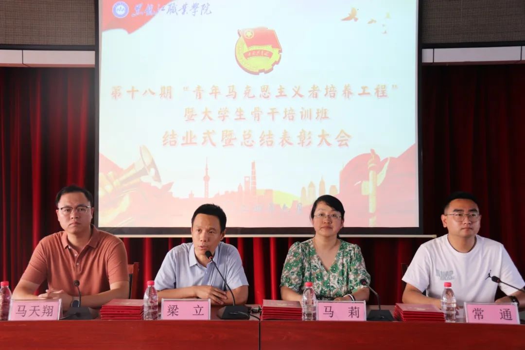 为深入学习宣传贯彻习近平新时代中国特色社会主义思想和党的二十大精神,培养一批信仰坚定、能力突出、素质优良、作风过硬的青年政治骨干,BB贝博艾弗森官方网站第二校区团委于6月17日至27日在二号教学楼六楼会议室举行了第十八期“青年马克思主义者培养工程”暨大学生骨干培训班。校团委直属学生组织副部长以上和二级学院团总支直属院级学生组织副部长以上共计120名工作人员参加了培训,培训班由校团委干事常通主持。