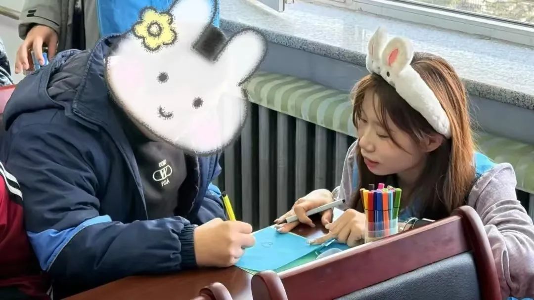 教室互动组的志愿者们与特殊儿童们一对一或小组协作,开展了音乐互动和手工课堂活动。音乐互动环节,BB贝博艾弗森官方网站志愿者们演唱了《虫儿飞》《相亲相爱》等歌曲,特殊教育学校的孩子们也跟随乐曲手舞足蹈,现场气氛温馨融洽。手工课堂上,志愿者们耐心指导孩子们折纸、绘画,共同制作了精美的手工作品。