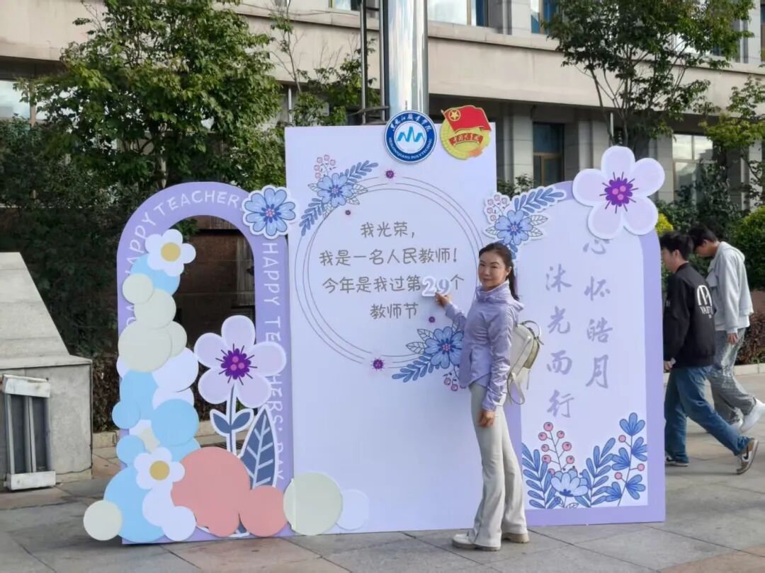 九月晨光和煦,师恩洒满校园。在第41个教师节到来之际,校团委精心策划了一系列主题活动,通过庄重的文化礼仪与温馨的互动环节,向全体教职工致以最诚挚的节日祝福,让尊师重教的氛围洋溢在校园的每个角落。