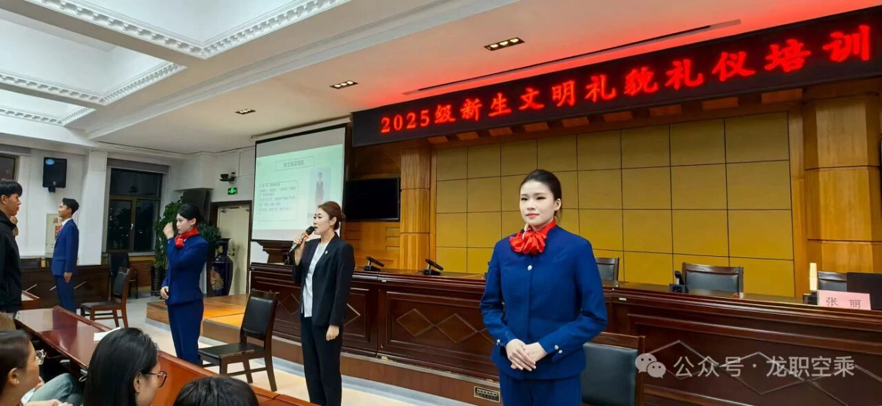 为进一步推进新生素质养成教育,将文明礼貌礼仪作为新生入学教育的重要一课,营造和谐文明的校园氛围,9月23日晚,学校在清华楼报告厅举办了2025级新生文明礼貌礼仪培训活动。本次培训特邀请旅游人文学院高级礼仪培训师张丽、王琪老师主讲,各二级学院的学生骨干参训。
