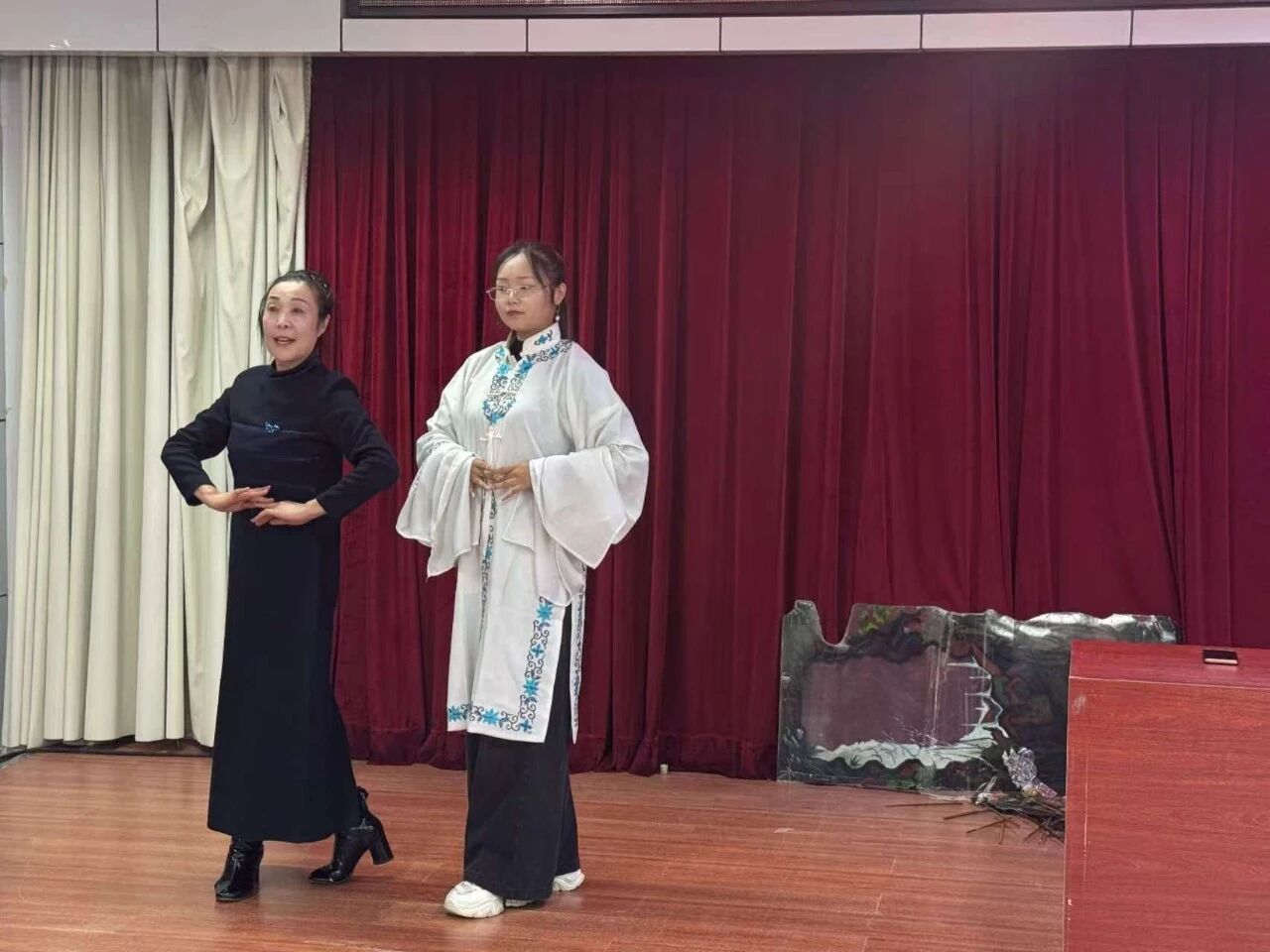 京剧是我国的国粹,京剧传承人闫淑英老师不仅为师生们演唱了传统京剧选段,更是现场示范水袖功。其精湛的技艺和生动的演绎获得了在场师生热烈的掌声。现场示范环节中,她亲自展示了身段、唱腔等京剧基本功,并指导学生互动体验,拉近了传统艺术与年轻群体的距离。不仅展现了京剧的艺术魅力,还通过手把手示范教学激发学生对传统文化的兴趣。