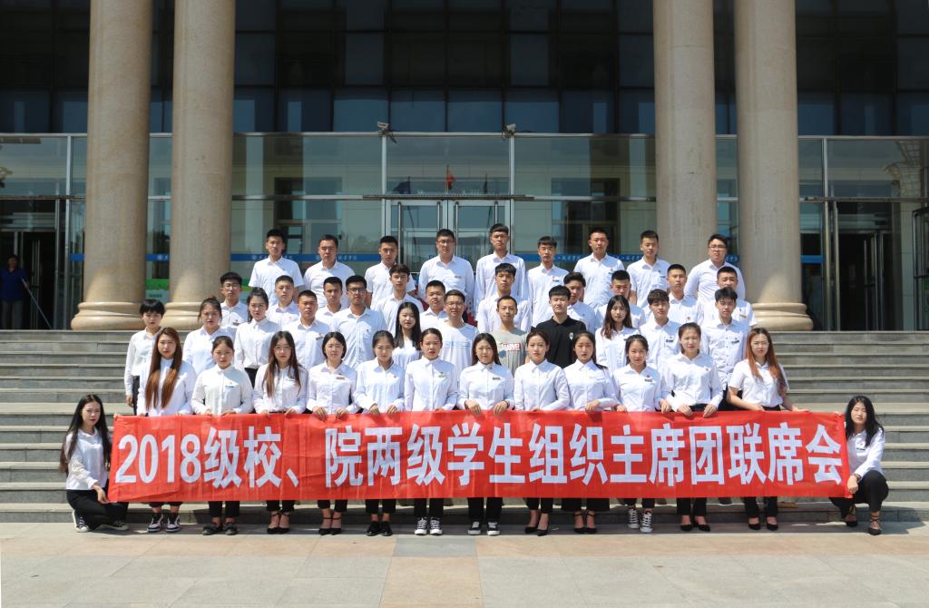 6月24日中午,校团委组织召开了2018级校院两级学生组织主席团联席会成立大会。校团委书记邹春雷出席会议并作了讲话,来自校学生会、校社团联合会、校新媒体中心、校学生纪管委、校学生公寓委、校学生军操委、校学生关心委、校学生综合委、校学生信息委、校学生伙食委以及各分院团总支副书记、学生会主席、社联主席 等42名同学参加了会议。会议由校团委学生副书记朱鑫浩主持。