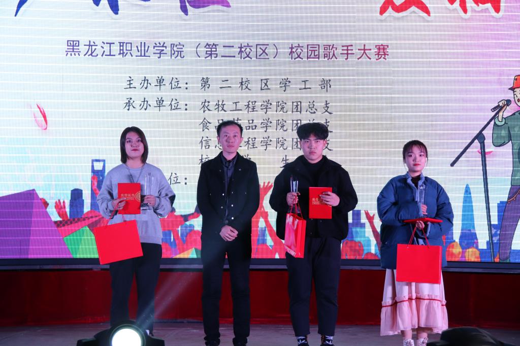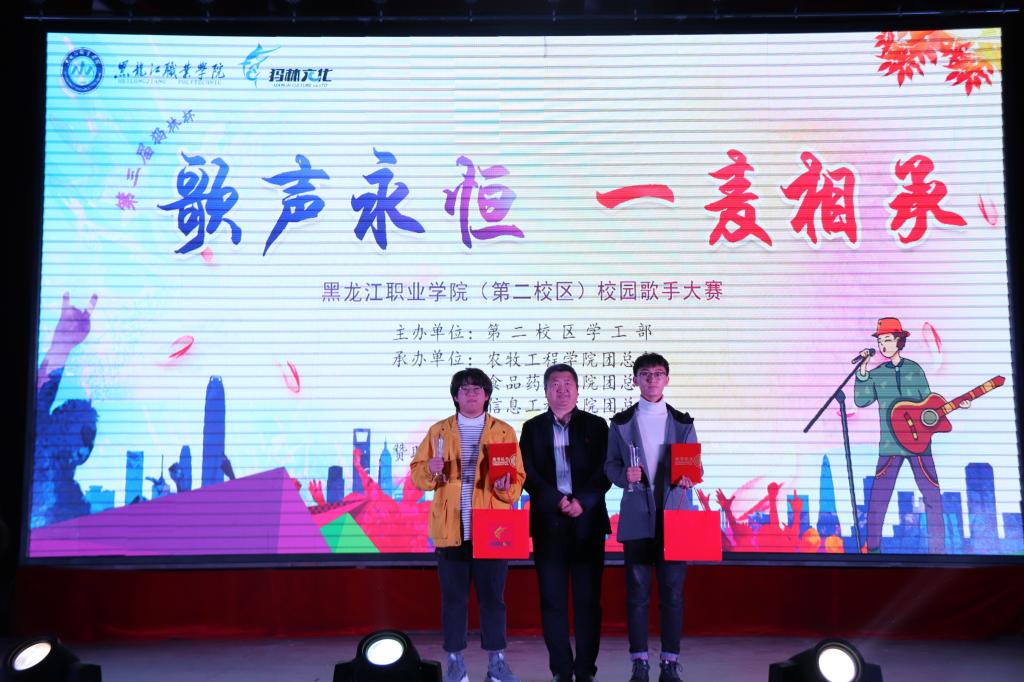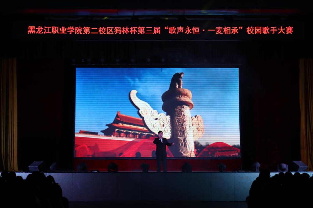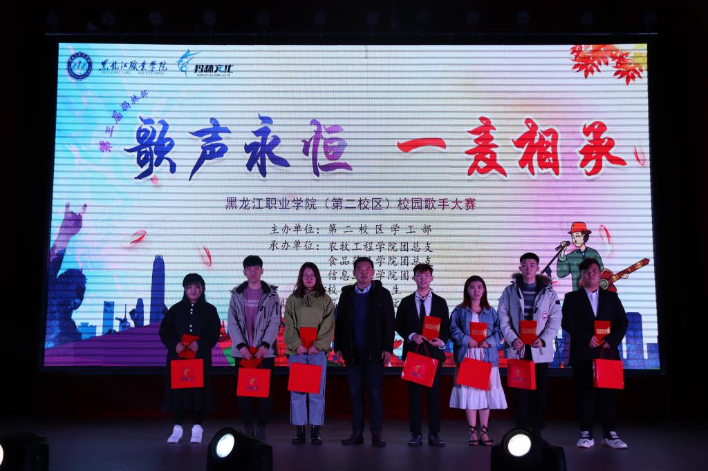2019年11月18日18时,由第二校区学工部主办、各二级学院承办、校学生会协办,犸林文化有限公司独家赞助的犸林杯第三届“歌声永恒,一脉相承”校园歌手大赛,在体育馆成功举办。学工部副部长赵彦生、各二级学院学工副院长、团总支书记参加活动。大赛邀请具有音乐专长的校区教师、黑龙江广播高校台PS早安秀主持人宋微和犸林文化有限公司总经理李博文等7名评委,与1300余名观众共同见证选手们的精彩表现。
