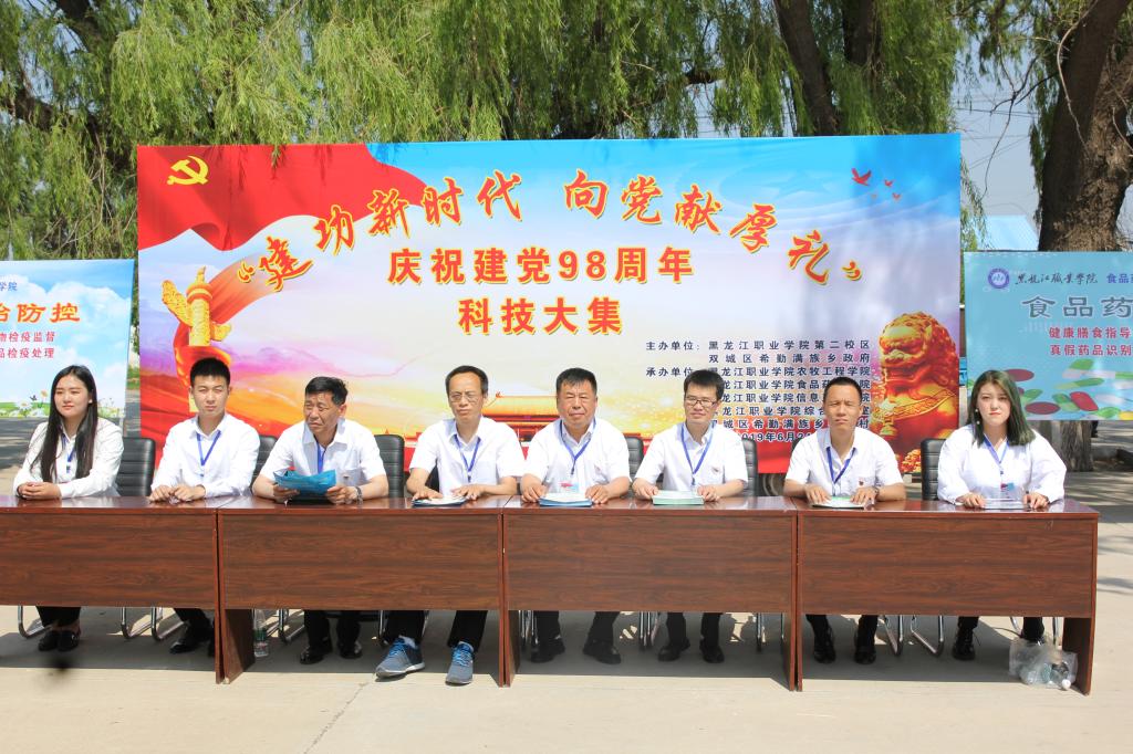 6月24日,由学校第二校区和双城区希勤乡联合主办,农牧工程学院、食品药品学院、信息工程学院、综合办公室、双城区希勤乡希勤村承办的“建功新时代·向党献厚礼”庆祝建党98周年科技大集活动在希勤村举行,BB贝博艾弗森官方网站副院长孙福忠,双城区希勤乡政府乡长胡祥辉,第二校区相关部门负责人、希勤乡村两级班子成员、希勤村全体村民及周边10个村屯近1500人参加活动。