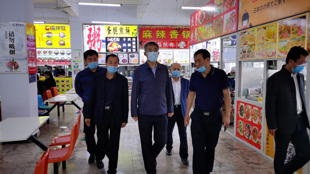 王利文先后深入到学生食堂、新建广场、学生公寓、快递集散地、临时隔离区、图书馆、校园浴池等处进行检查指导。