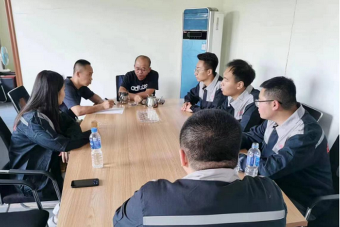 ▲“龙之禹·环净卫士-乡村生活垃圾无害化处理技术赋能者”项目指导教师刘洋与团队学生一起研讨