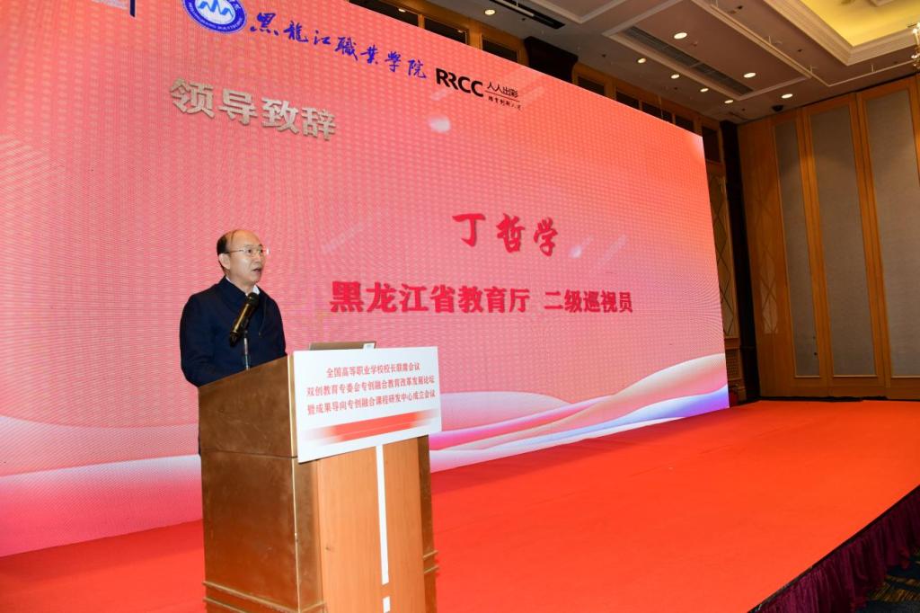 11月24日至25日,由全国高等职业学校校长联席会议(以下简称“校联会”)、黑龙江省教育厅指导,校联会双创教育专委会主办,BB贝博艾弗森官方网站、北京人人出彩科技有限公司承办的专创融合教育改革发展论坛暨“全国高等职业学校成果导向专创融合课程研发中心”成立大会在哈尔滨隆重召开,全国首家“全国高等职业学校成果导向专创融合课程研发中心”在贝博官网挂牌成立。校联会秘书长任君庆出席论坛,并宣读了在BB贝博艾弗森官方网站成立“全国高等职业学校成果导向专创融合课程研发中心”文件,黑龙江省教育厅二级巡视员丁哲学,BB贝博艾弗森官方网站党委书记崔治春、校长王利文,校联会副秘书长张静、校联会双创教育专委会秘书长明照凤等领导出席论坛,来自全国75所高职院校120余名校领导、二级学院院长、教务处处长、教研室主任、专任教师参加本次论坛。