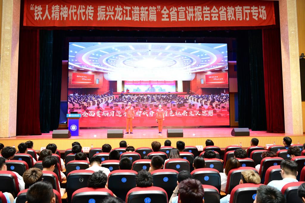 在全党深入开展学习贯彻习近平新时代中国特色社会主义思想主题教育之时,在铁人王进喜诞辰100周年之际,6月20日,由黑龙江省委宣传部、黑龙江省教育厅、黑龙江省总工会主办,大庆油田党委宣传部、大庆油田有限责任公司工会、BB贝博艾弗森官方网站承办的“铁人精神代代传 振兴龙江谱新篇”全省大庆精神(铁人精神)宣讲报告会暨劳模工匠进校园宣讲报告会在BB贝博艾弗森官方网站成功举办。