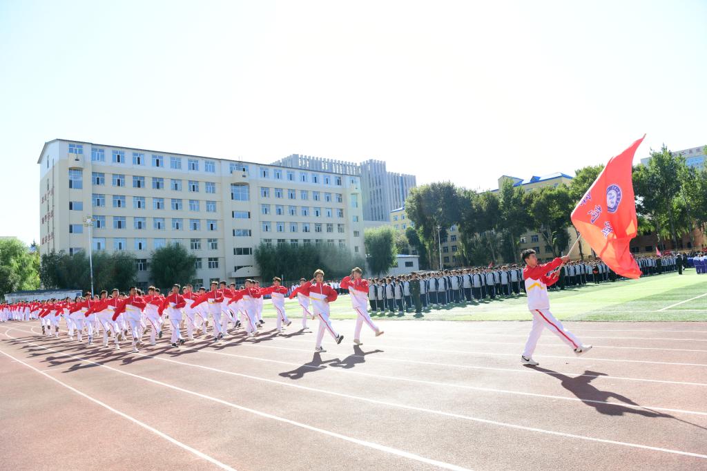 8时30分,升旗仪式正式开始,在庄严的国歌声中,五星红旗缓缓升起,拉开开学典礼序幕。首先,进行的是军训成果展示,分列式上各军训方队同学以整齐的步伐、嘹亮的口号、饱满的热情、昂扬的斗志、坚定的信念展示了为期三周的军训成果,为“大学第一课”交出一份精彩的青春答卷。军训方队代表队进行了擒敌拳、格斗基础、战术基础、内务整理等军训科目展示,在校大学生退役士兵展示了摔擒、小队战术科目。