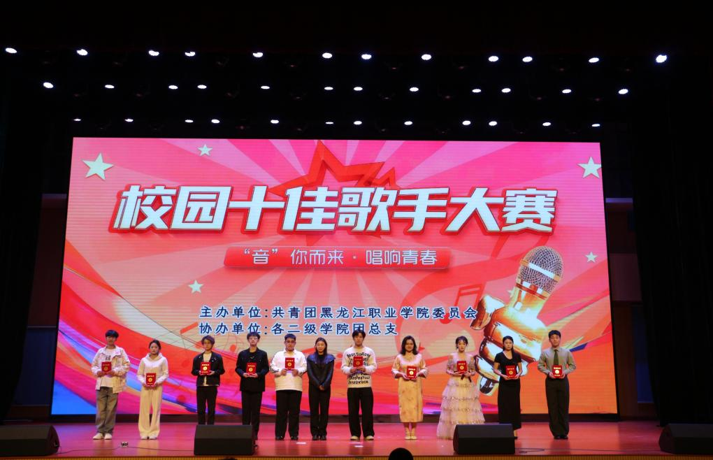 最终,经过激烈角逐,数字商贸学院刘宇航、建筑工程学院马誉晏、旅游人文学院冯楚格、数字商贸学院陈美琳、旅游人文学院陈俊安、智能制造技术学院李明璇、建筑工程学院张天錡、旅游人文学院崔诗雨、智能制造技术学院于春瑶、智能制造技术学院宋泽,获得“校园十佳歌手”荣誉称号。魏然为获奖选手颁奖。