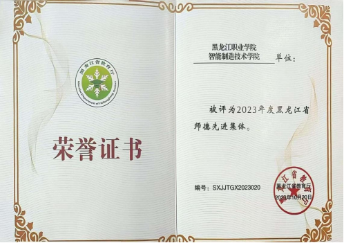 学院在党建引领、思政教育、技能培养等方面取得了显著成效,荣获教育部“新时代职业学校名师(名匠)名校长培养计划(2023—2025年)培养对象”1人、国家级工人先锋号称号1个、享受国务院特殊津贴专家1人、黑龙江省工人先锋号称号1个、黑龙江省教育系统先进集体1个、黑龙江省级师德先进集体1个、“黑龙江省高等学校课程思政教学团队”1个、黑龙江省人民政府“龙江技术能手”1人、黑龙江省级教学名师2人、享受黑龙江省政府特殊津贴专家2人、黑龙江省总工会“龙江工匠”1人、黑龙江省高层次人才6人。同时,学院还拥有“国家级技能大师工作室”“省级技能大师工作室”和“省教科文卫体系统劳模和工匠人才创新工作室”。