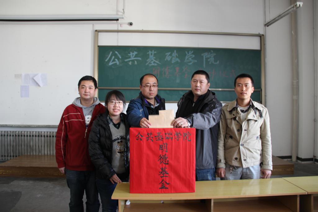明德基金的启动,充分体现了公共基础学院全体教职工扶贫济困,心系学生,爱生如子的崇高师德。公共基础学院将以此为契机,诠释师德,加强教师师德建设,坚持不懈地提高思想道德修养和业务能力水平,进一步增强责任感和使命感,积极探索,锐意创新,为学生、为学院作出新的更大的贡献。