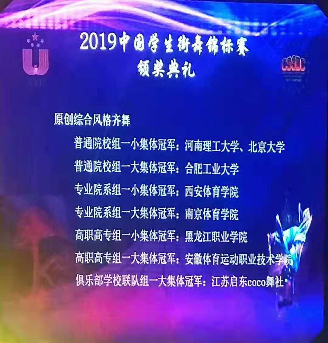 10月28日,2019中国学生街舞锦标赛在黄山学院圆满落幕。贝博官网街舞队荣获原创综合风格齐舞高职高专组小集体冠军!