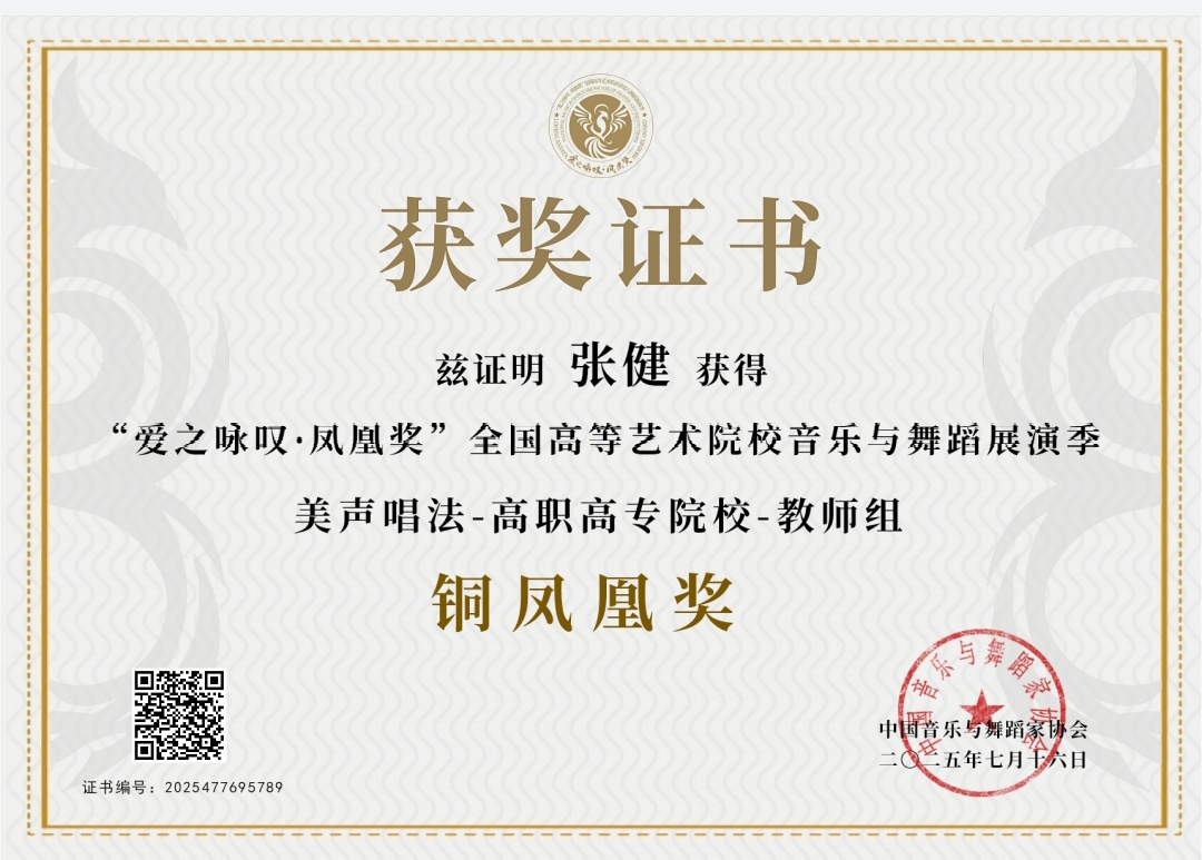 近日,首届“爱之咏叹·凤凰奖”全国高等艺术院校音乐与舞蹈展演季在沈阳圆满落幕。贝博官网通识教育学院教师张健凭借咏叹调《黄河怨》、《你知道吗?好妈妈》荣获美声唱法高职高专教师组铜奖。