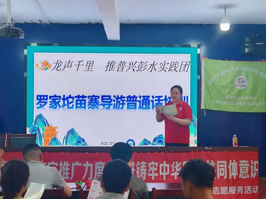 7月24日,共青团彭水县委的感谢信飞往冰城:“实践团创新社会实践模式,让普通话的清音响彻彭水,为乡村振兴注入蓬勃动能!”成员吴宜轩在日志写道:“那些纠正发音时的笑脸,直播下单的叮咚声,齐唱《爱我中华》的歌声,是此行最生动的韵脚。”“龙行千里”实践团,这个夏天在彭水埋下语言赋能种子,正借教育部“推普助力乡村振兴”的东风,于苗乡沃土静待春生。