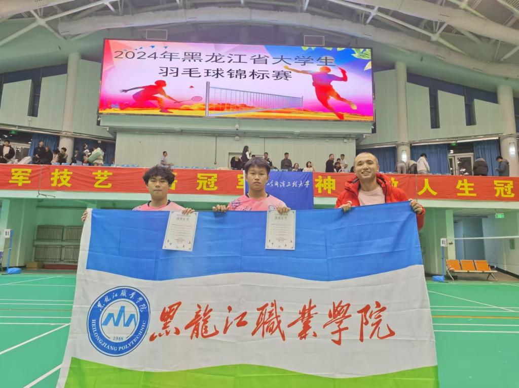 近日,2024年黑龙江省大学生羽毛球锦标赛落下帷幕,此次比赛由黑龙江省学生体育协会主办,哈尔滨工业大学承办,全省共有48所高校556名运动员参加,这是贝博官网第一次参加黑龙江省大学生羽毛球锦标赛。在学校各级领导的大力支持下,通识教育学院教师闫宇鹏带领队员陈晖鹏、周博浩、张炜东、康城伟不畏强敌、奋勇拼搏、经过三天的激烈比拼,陈晖鹏、周博浩在丙组男子双打比赛中荣获亚军,陈晖鹏荣获“优秀运动员”称号。