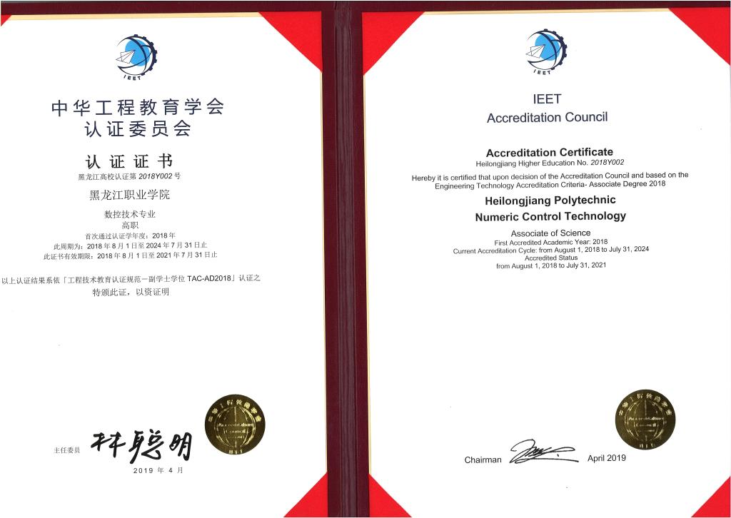 2019年4月19日,中华工程教育学会(IEET)认证委员会( Institute of Engineering Education Taiwan) “2018学年度通过认证专业证书颁发仪式”在西安隆重举行,贝博官网首批参加悉尼协议国际工程技术教育认证的数控技术专业与计算机网络技术专业获得了国际工程技术教育认证(TAC-AD)证书。