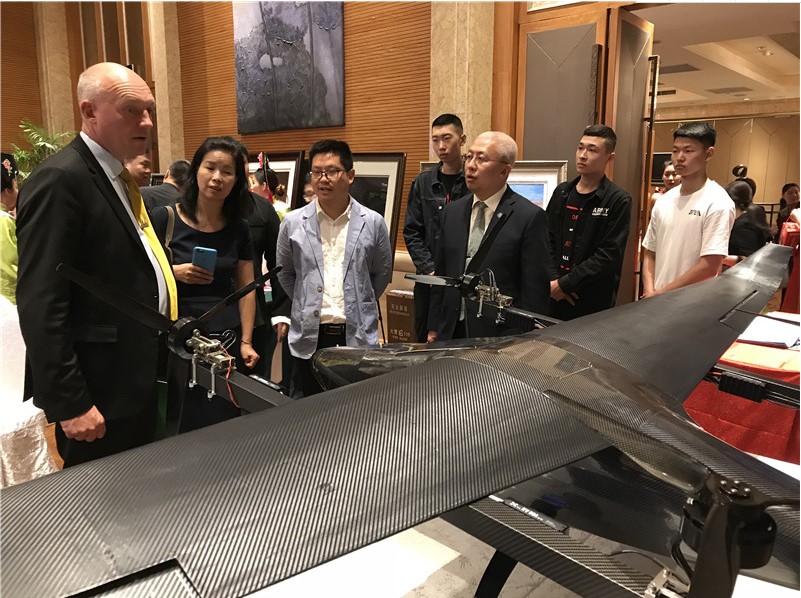 电气工程学院院长敖冰峰主持会议,副校长王明海致欢迎辞,希望能有更多与国际企业和院校交流的机会,探索教育合作和经济合作的途径。Stefan Matz先生致辞,在中国 “一带一路”战略政策下,哈尔滨已经开放了与德国汉堡市的班列,德国汉堡经济促进局愿意与贵校一起,探讨国际合作的契合点。随后,Ma Lina女士和曹伟女士分别致辞。到姚智慧技能大师工作室参观,观看雕刻机器人工艺品加工过程,进行工艺品赠送,在状元广场进行无人机飞行表演,德国汉堡经济促进局进行礼物交换,最后在人才山合影留念。
