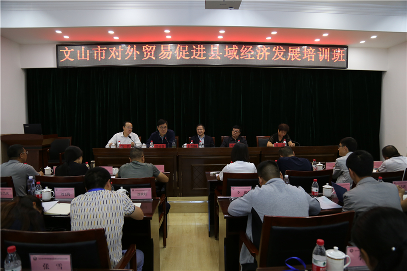 6月12日,文山市对外贸易促进县域经济发展培训班在贝博官网举行,48名文山市委、人大、政府、政协领导、市级各部门分管领导、乡镇(街道)领导干部、业务骨干、部分外贸企业负责人参加培训。学校副校长郑福贵,省政府参事叶晓峰,哈电集团党委常委、纪委书记白绍桐,文山市人大副主任黄利,文山市副市长刘滨出席会议。
