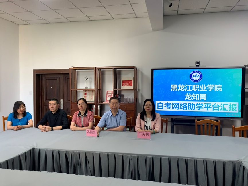 5月23日下午,黑龙江省招生考试院自考处冯国忠处长一行四人莅临贝博官网检查指导自考助学工作。继续教育学院院长王英侠、副院长董中杰、网络教学部相关人员参加会议。