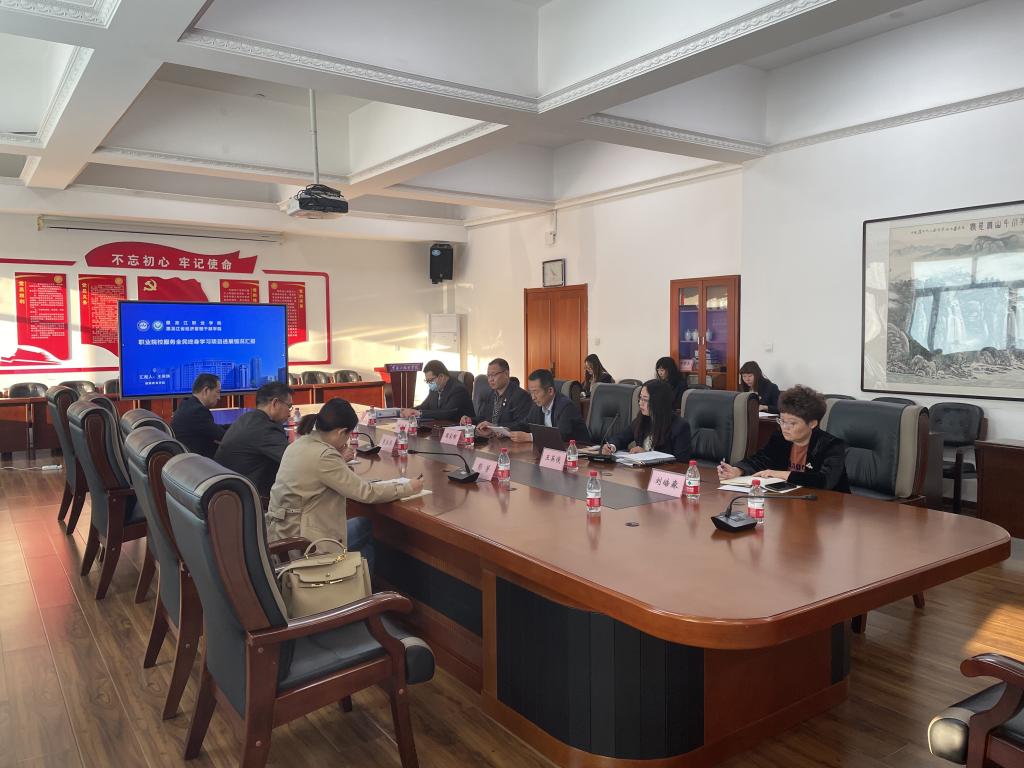 在交流会谈环节,周家郁首先代表学校对李荣华一行的到来表示热烈欢迎,并简要介绍了学校的基本情况。继续教育学院院长王英侠随后向来宾详细汇报了《职业院校服务全民终身学习》项目的进展、成果以及面临的挑战。李荣华主任对贝博官网继续教育工作给与了高度评价,他指出“龙职继续教育工作扎实、基础稳固,尤其是在社区教育方面能够扎根深入,久久为功,实属难得。”