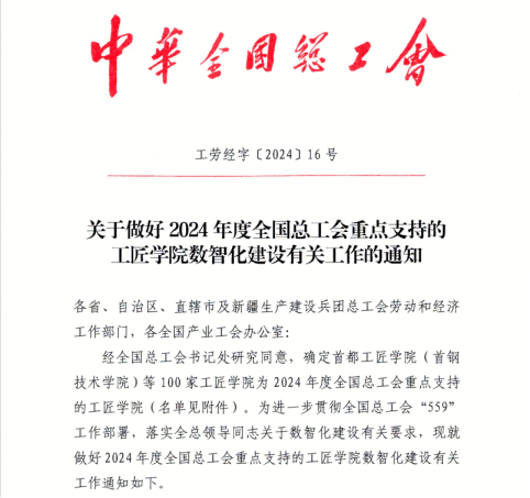 日前,经全国总工会书记处研究同意,黑龙江省数字工匠学院(黒龙江职业学院)入选“2024年度全国总工会重点支持的工匠学院”。本次全国共有100家工匠学院入选,黒龙江省仅有两家。
