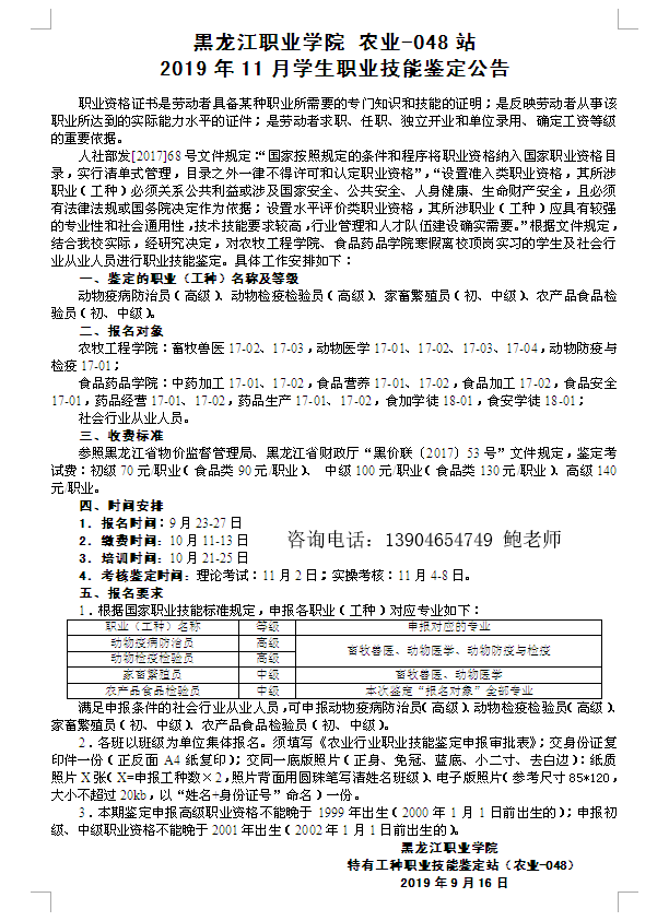 BB贝博艾弗森官方网站农业-048站2019年11月学生职业技能鉴定公告