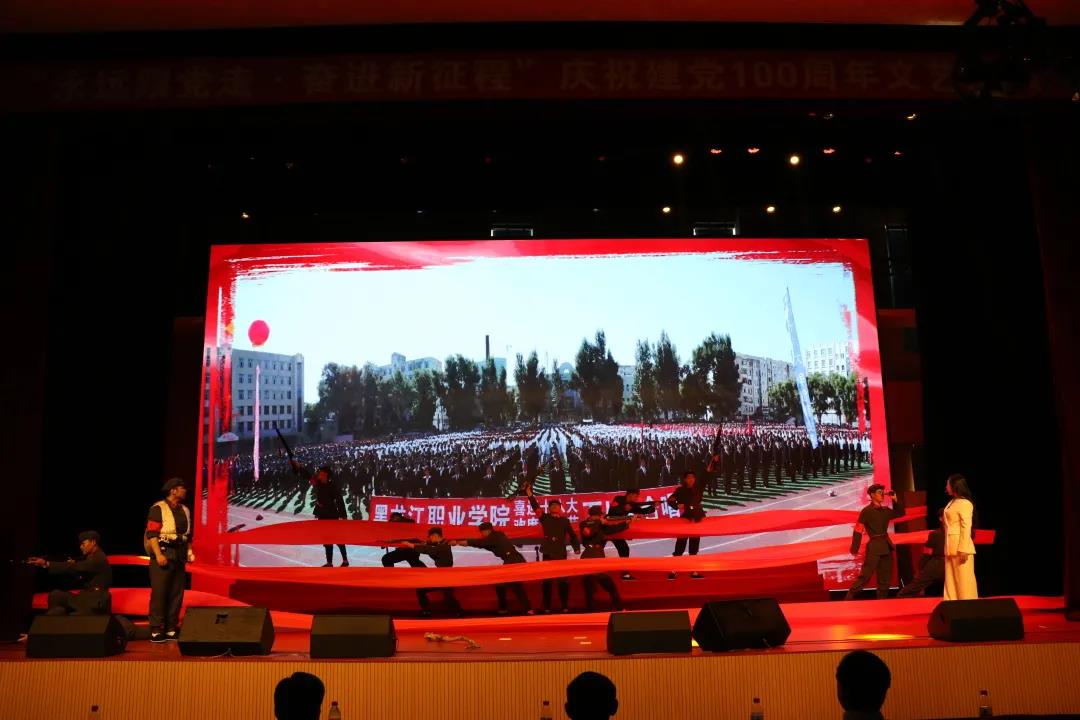 并穿插了国家和学校发展进程的照片作以展示,最后在学院师生共同宣读入党誓词中圆满结束。