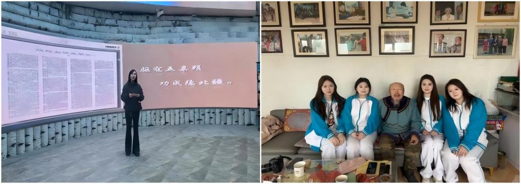 在民俗风情园展览馆内,建工学院辅导员沈悦以沉浸式的讲解,带领学生们触摸历史脉络,以文物为匙打开尘封的时光,用故事作舟横渡岁月的长河。与学生的一问一答间,使鄂族的千年文明变得触手可及,她的精彩讲解得到了现场观众的一致认可。随后,研学团来到非遗传承人郭宝林老人家,聆听老人讲述非遗技艺传承的故事。郭宝林老人多年来致力于鄂伦春族传统技艺的传承与发展,他的坚守与执着深深打动了每一位同学。大家纷纷表示,要积极参与到非遗文化的传承与保护中来,为弘扬中华民族优秀传统文化贡献力量。