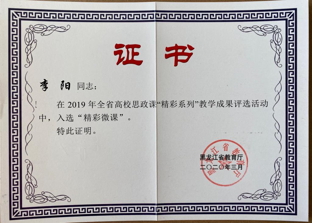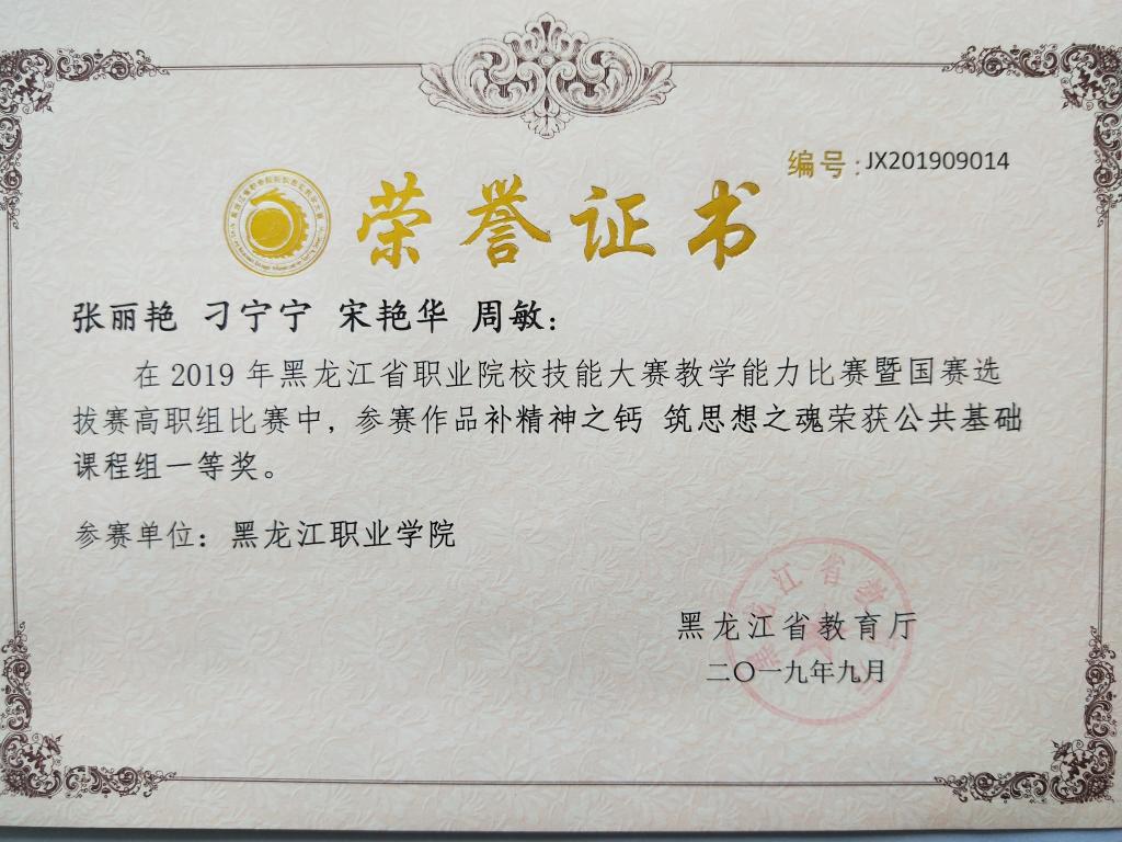 2016年以来,在全国高校思政课教师教学比赛中,思政课教师获二等奖三项;在全国教科文卫体教学大赛中获三等奖一项,是唯一一位高职院校选手,超过了10所本科学校,教育厅向贝博官网发来了热情洋溢的感谢信;在全省职业院校教师教学能力大赛中连续两年获公共基础组一等奖;在全省高校思政课教师教学比赛中,获一等奖三项,二等奖三项;在全省高校思政课教师“精彩系列”比赛中获奖十余项;在指导学生参加全省大学生“新思想,我来说”大赛中,获二等奖两项,三等奖一项,最佳指导教师奖一项,组织奖一项。在全国抗“疫”微党课、全国职业院校名师讲党课等活动中,思政部教师主讲的党课入选,在全国高校思政网、学习强国等平台展播,获省组织部“精品党课”奖。