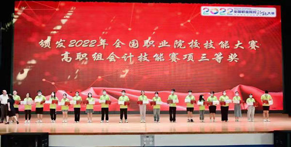 8月22日——23日,在全国职业院校技能大赛高职组会计技能赛项比赛中,我院2020级李彦爽、姜坤、王佳欣、潘卓群四名学生,在杨继杰、田思邈两位指导教师的带领下参赛,位列第22名,荣获三等奖。