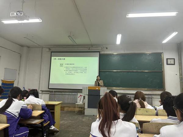 在专业学习介绍中,两位教研室主任从行业发展趋势、就业前景和岗位、专业课程体系、课程学习方法、职业技能大赛、职业资格证书考取、专升本等方面进行了详细说明。在论及大学生活时,两位教研室主任对同学们三年的大学时光满含期望,希望同学们秉持正确的人生观、价值观和世界观,快乐生活,勤奋学习,顺利走过大学岁月,在追求理想的人生旅途中永葆热情,踔厉奋发。