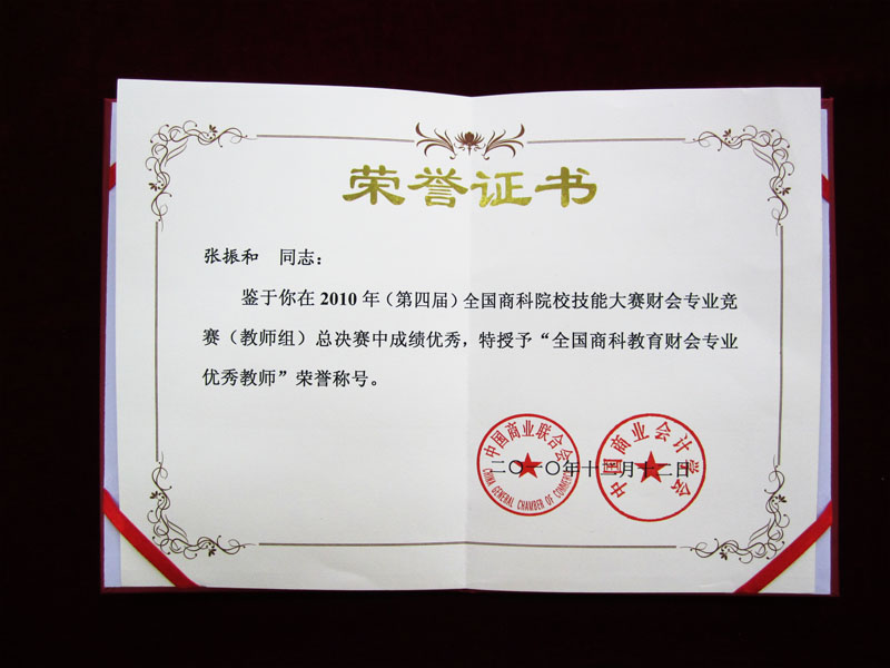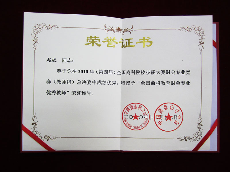 此外,经过大赛组委会层层筛选,我院闫晓波老师被选为大赛评委委员,参加了大赛全部评比工作。鉴于我院在此次大赛的优异表现,被大赛组委会授予“最佳院校组织奖”和“全国商科教育财会专业教学最佳组织奖”。我院是惟一一家获得两项大奖的院校。