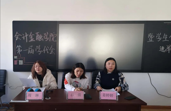 根据校团委通知精神和大会要求,在我院党总支的领导和团总支的指导下,认真贯彻民主集中制,积极参与学代会的各项筹备工作,秉承公平、公开、公正的原则做好代表候选人的推选工作。我院于2020年11月20日中午12:40分在工匠楼603室举办会计金融学院第一届学代会暨学生代表团选举大会。出席本次大会人员有会计金融学院党总支副书记学管副院长石倩、学管办主任兼团总支书记姜婷婷、学管办老师兼学生会指导教师周琳、辅导员代表老师王双琪,以及各年级41名学生代表。