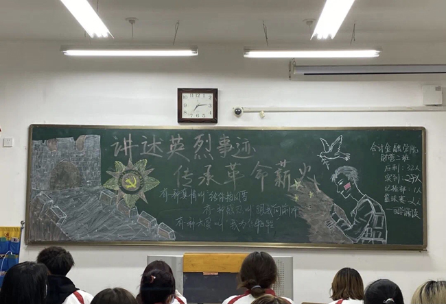 活动开始前,各班班委积极配合,积极准备了主题板报和相关资料,同学们积极准备相关的红色故事诵读。重温英烈事迹,讲述英雄故事、重温入党(团)誓词、引导学生抒发爱国情怀,传承革命薪火。让同学们积极充分了解历史,对革命有了一个新的概念。并且我院还通过网上祭扫 ,呼吁同学网络文明祭扫、充分利用网络平台、通过鲜花追悼、丝带祭祀、缅怀寄语等方式,引导同学以文明、环保、节俭、安全的方式寄托哀思。