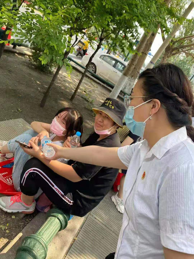 送一瓶水,暖一人心,接一瓶水,静一人心。通过此次活动的开展,不仅让教工党员意识到为群众服务不分大小,更让学生党员深刻体会“为人民服务”这五个字的意义,同时真正拉进党员与群众的距离,让每一名群众都了解,共产党员时刻都在他们身边,支部也将以此为契机,继续开展好党史教育系列活动,以更好的成绩向建党百年献礼。