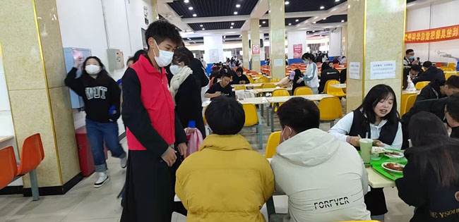 疫情就是命令,防控就是责任,这是习近平总书记作出的重要指示,在当前疫情防控中,要紧紧依靠群众力量,坚决打赢疫情防控阻击战,坚决实施上级要求,以身作则,让同学们养成良好用餐习惯,一桌两人,隔位就坐,为的就是可以度过这个寒冷的冬天,度过这个严峻的疫情,使我院师生远离危难。