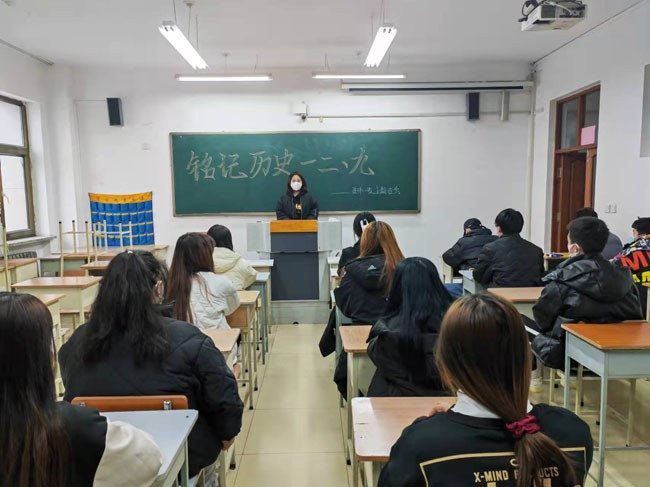 为了纪念“一二九”学生爱国运动,弘扬爱国精神,珍惜美好生活,展现新时代大学生“超越自我,追求卓越”的精神面貌,我院特于2021年12月9日在线下要求学生们佩戴口罩,隔位就坐举办了一场以“弘扬爱国精神,珍惜美好生活”为主题的班会活动,并进行讲解“一二九”运动相关知识。