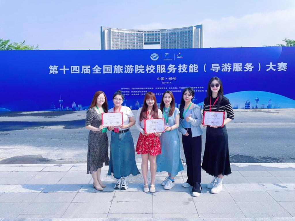 在2024年5月24日至5月26日河南郑州举办第十四届全国旅游院校服务技能大赛(导游服务)赛项中,旅游管理专业23-03班李小漉同学(指导教师:陈洪宏、王伟)、22-01班孔祥飞同学(指导教师:陈心宇、于成龙)荣获二等奖,23-03班王梓瀛同学(指导教师:田红旭、刘宏申)荣获三等奖!