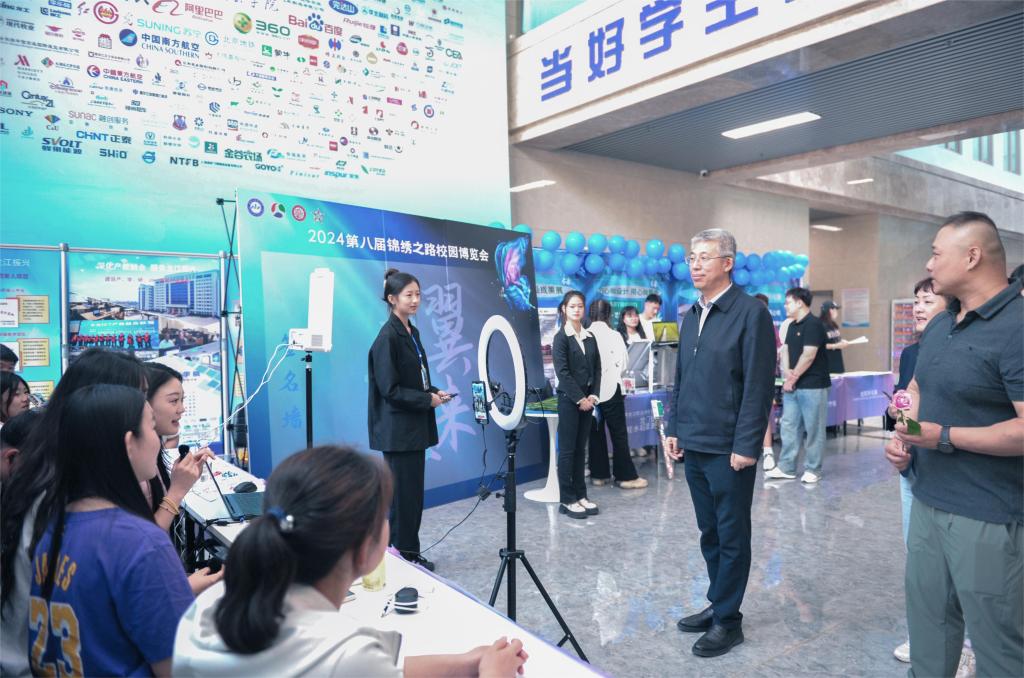 当天,BB贝博艾弗森官方网站校长王利文、党委副书记周家郁来到展会现场并参加了开幕式。开幕式在欢快的开场舞中拉开序幕,旅游人文学院党总支书记李勇民、创新与创业学院副院长朱晓丹进行了开幕式致辞,到场领导为开幕式剪彩,旅游人文学院院长刘莉宣布展会正式启幕。展会进行过程中,BB贝博艾弗森官方网站副校长何志鹏也来到现场参观指导。