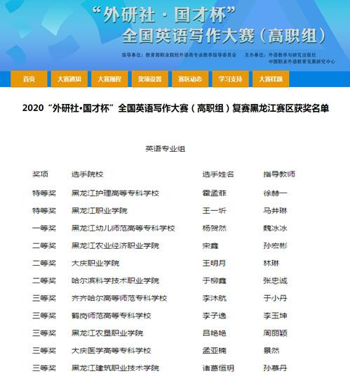 近日,由外语教学与研究出版社和中国职业外语教育发展研究中心主办,2020“外研社-国才杯”全国英语写作大赛(高职组)复赛正式拉开帷幕。贝博官网参赛学生在旅游与人文艺术学院商务英语专业教师马井琳的悉心指导下,经过赛前周密组织、认真备赛,在比赛中表现优异、沉着冷静、一路过关斩将,最终贝博官网2020级商务英语专业学生王一圻喜获专业英语组特等奖,顺利晋级全国总决赛。